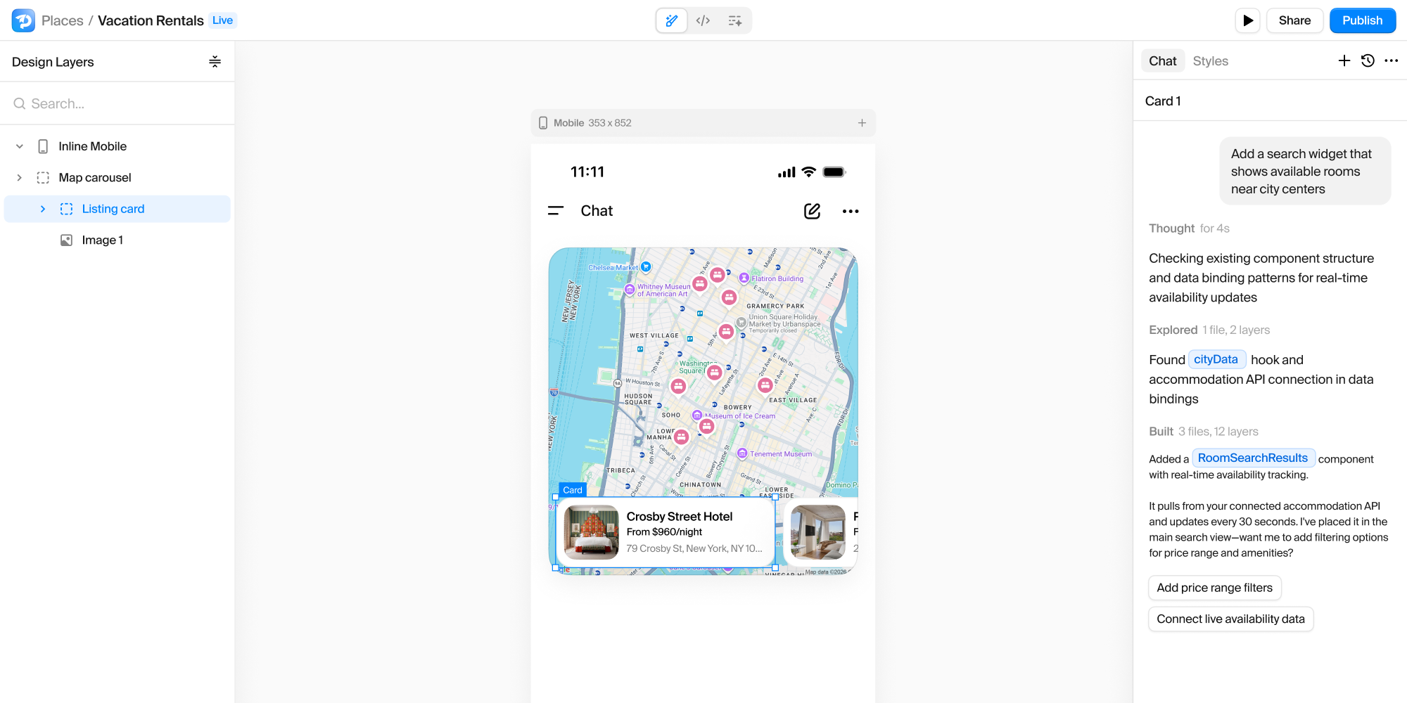 Design interfaces, connect data, and wire logic—visually, in code, and with AI.